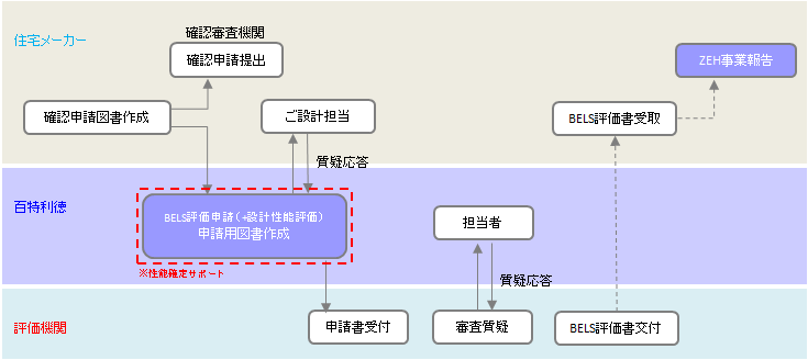 當(dāng)社で行う「住宅申請代行サポート」業(yè)務(wù)とは、住宅の性能評価?長期優(yōu)良住宅?BELSの住宅申請代行業(yè)務(wù)と、省エネルギー性能値(斷熱+一次エネ)計(jì)算の代行業(yè)務(wù)を行います。