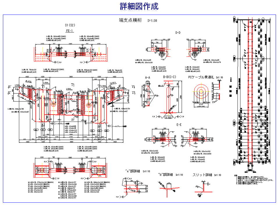 鋼橋をはじめ、あらゆる鋼構(gòu)造物の原寸処理を提供いたします。専用のCADシステムを駆使しながらお客様のニーズに合わせ工場(chǎng)での製作に必要な図面やリスト類等の作成受託サービスを提供いたします。