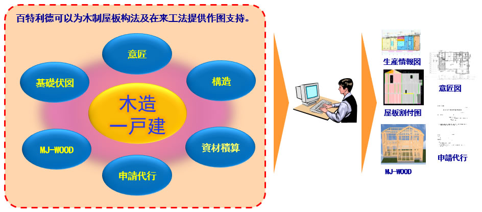 從日本一戶建營業(yè)人員在和客戶營業(yè)過程中需要的說明圖面開始,一直到真正簽約后的作圖及部品,備品計算,并同時提供施工圖為止都能夠?qū)?yīng)。