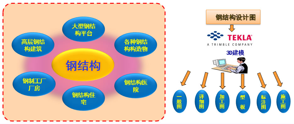 我們使用TEKLA,AUTOCAD等軟件,為客戶提供鋼結(jié)構(gòu)的設(shè)計(jì)圖(計(jì)劃圖,構(gòu)造圖)及設(shè)計(jì)檢查用的圖面,以及加工工廠用的加工圖,裝配圖等設(shè)計(jì)工作。