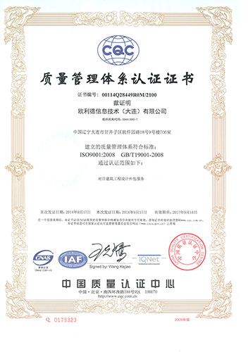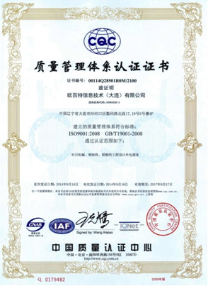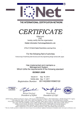 ?ISO 9001:2008?品質(zhì)マネジメントシステム?取得期日:2014年9月18日